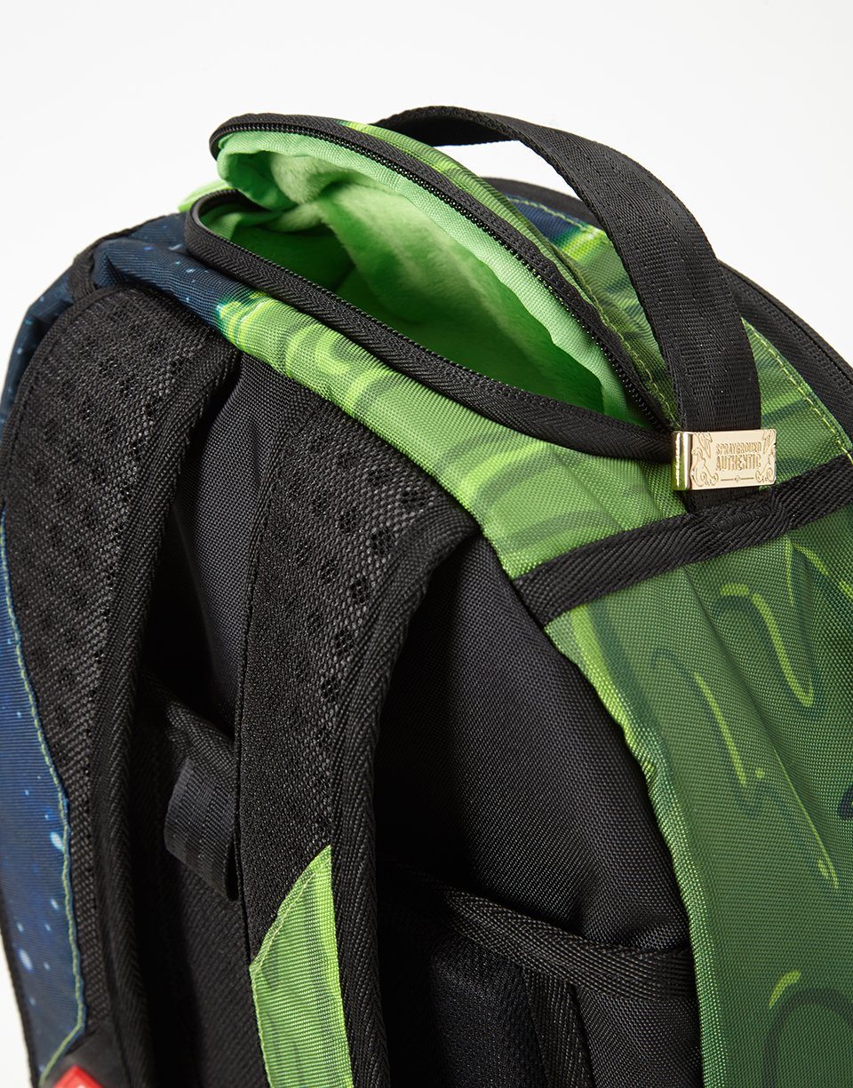 ExteriorDimensions: 18" x 6" x 11.5" ∙ Front zipper pocket ∙ Side pockets ∙ Zippered Stash pocket ∙ Ergonomic mesh back padding ∙ Adjustable Straps for custom sizing ∙ Nylon Zippers with Metal Hardware ∙ Metal "Sprayground Authentic" badge ∙ Slide through back sleeve connects to Carry on luggage to free your hands